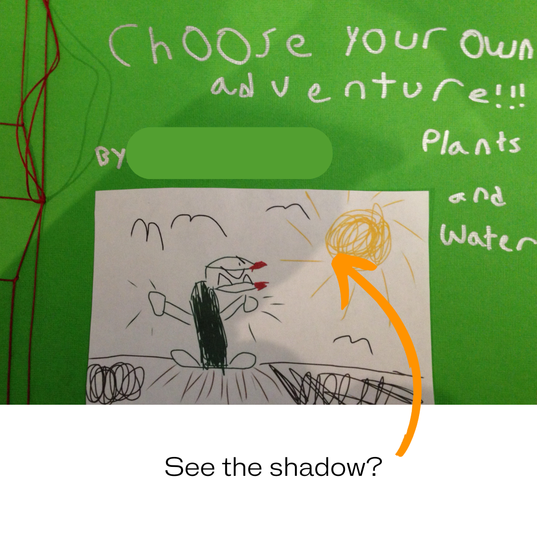 This is one of my favorites - my son created this book for the Young Authors project they did every year in elementary school. But see the shadow of the phone? Make sure you check the photos before you get too far into the process and reposition as needed. I wish I had read a blog like this before I took this photo in 2014 😉.
