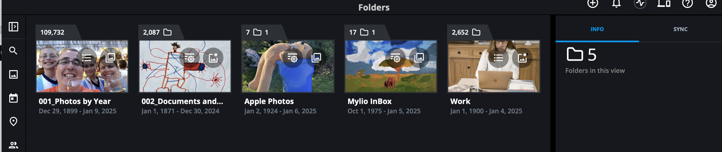 As far as I’m concerned, Mylio Photos (affiliate link) handles this separation the best. By far. Because Mylio stores your photos in folders that you create and organize, photos can be kept completely separate. I have all photos I take for work in a “work” folder with several subfolders. You can choose not to see these photos in the calendar view, so if I’m scrolling in that view I won’t see them at all. I also look at my photos from the folders view (below) - where I also will not see co-mingled personal and work photos. If I go to the all photos view, which I rarely do, I will see both personal and work photos together chronologically just like the other photo storage database systems discussed in this blog. But that does need to be my default view so it’s easy to avoid, and I rarely use the all photos view.